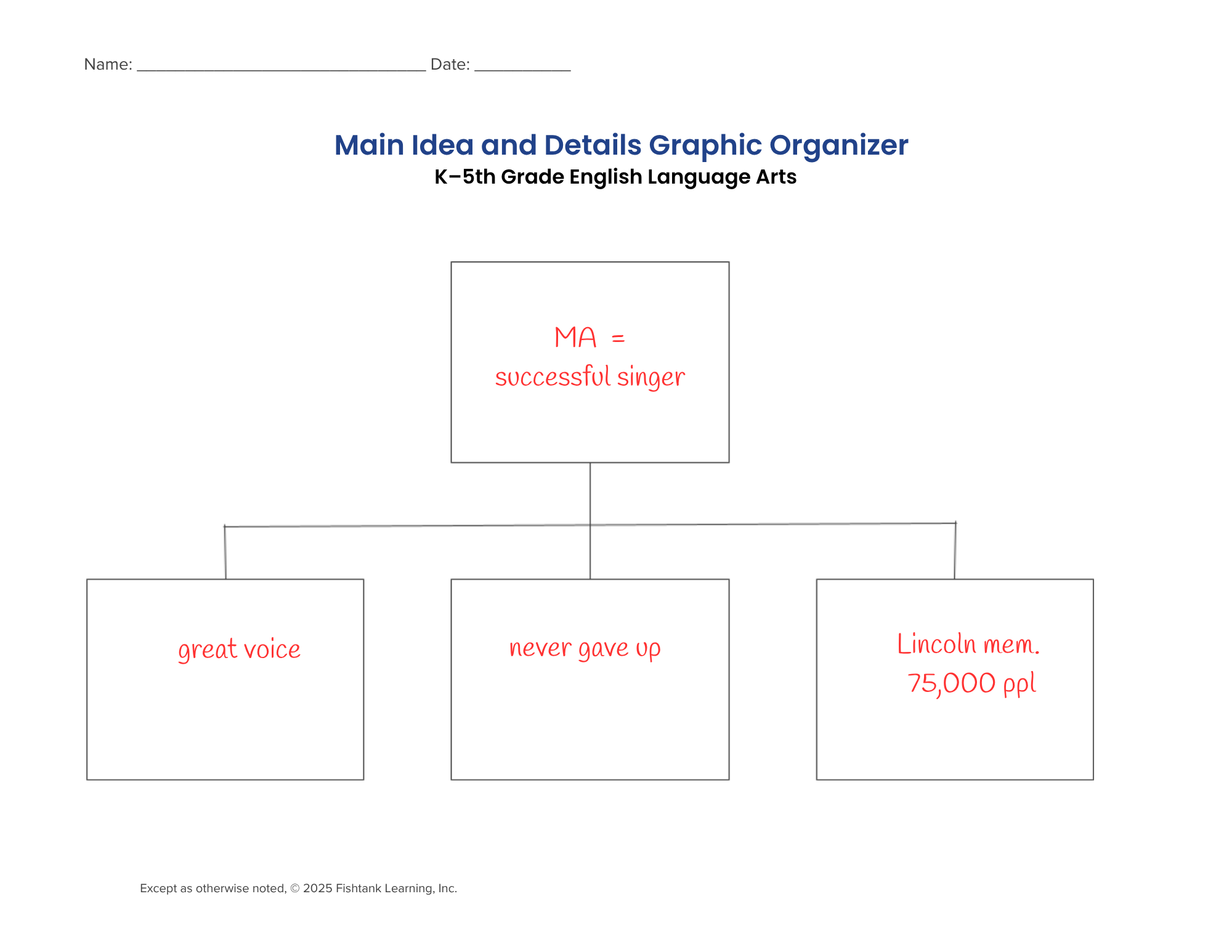 - Exemplar Main Idea and Details Graphic Organizer (G1, U5, L23)