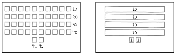- Numbers can be composed and decomposed in multiple ways to show equivalence (e.g., 25 can be made with 2 tens and 5 ones or with 1 ten and 15 ones) and to deepen understanding of the relationship between tens and ones.