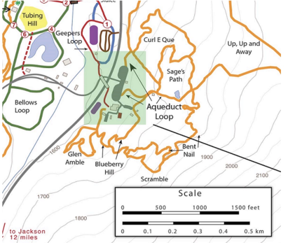 Cory is looking at a digital trail map of a local park. On the map, a trail segment is 2 inches long. The scale of the map says: 1 inch = 200 feet.