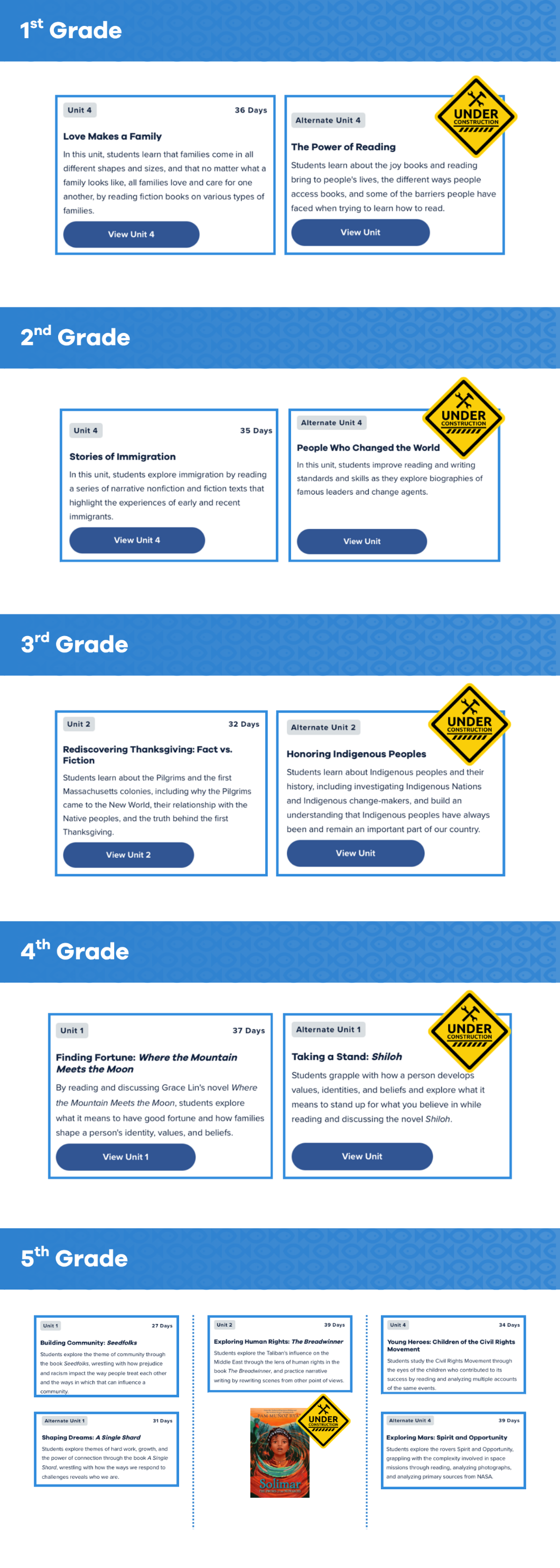 Announcing Additional Unit Options for ELA Grades 1-5 in 2026-27